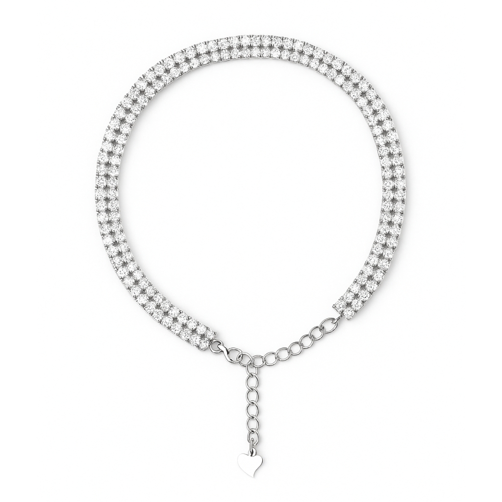Crafted in pure silver, this double-row tennis bracelet sparkles with beautifully set zircons, offering a luxurious shine. Designed with an adjustable chain and heart charm for a perfect fit ideal for everyday elegance or special occasions.