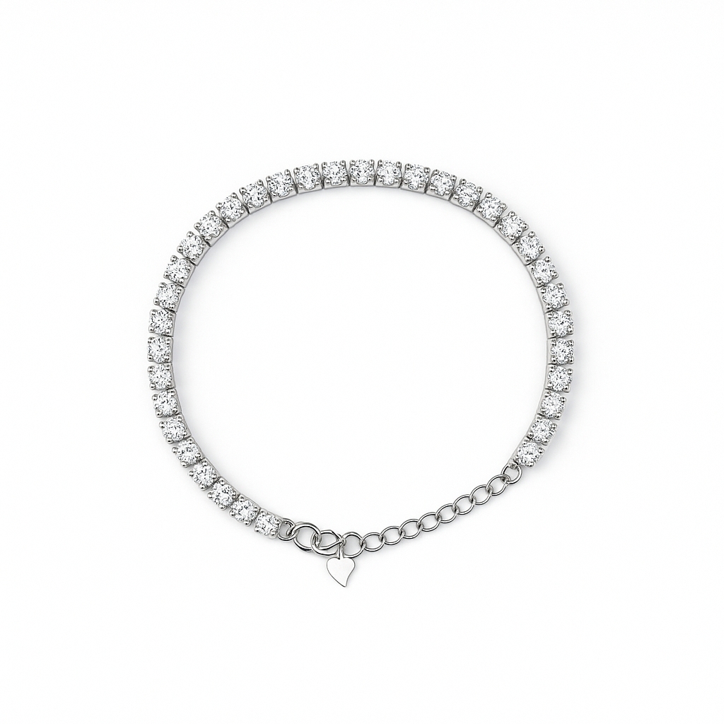 Elegant and timeless, this silver tennis bracelet features a full row of sparkling zircons that add a refined shimmer to your everyday and special-occasion looks. Lightweight, classy, and crafted for all-day comfort.