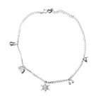 A dainty sterling silver anklet adorned with tiny cubic zirconia for just the right touch of sparkle. Subtle, stylish, and perfect for layering or wearing solo.